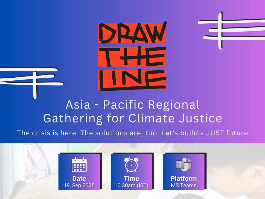 Duryog Nivaran leading the GSHG will convene organizations from across the Asia-Pacific region to share their local experiences, demands, and strategies for climate justice in solidarity with the Draw the Line Campaign on the 19th of September 2025. We’ll explore the crucial intersection of feminist movements and the climate justice agenda, shaping our collective advocacy efforts leading up to COP30 and beyond.